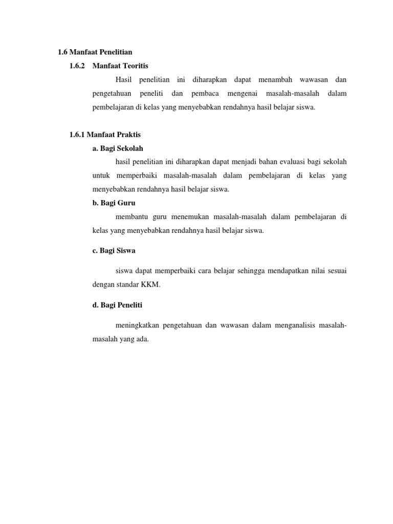 Manfaat Teoritis Penelitian - 2 / Metode untuk melakukan ... from lh5.googleusercontent.com Metode untuk melakukan penelitian merupakan hal yang penting agar dapat dicapai hasil akurat dan sesuai dengan tujuan penelitian yang sudah ditentukan sebelumnya. Bukan berarti jika penelitian sosial tidak memiliki manfaat praktis maka bukan penelitian yang baik. Contoh manfaat penelitian serta penulisan karya ilmiah,skripsi, makalah, pendidikan serta pengertian, tujuan manfaat penelitian bagi mahasiswa secara lengkap. Penelitian ini penulis menggunakan jenis penelitian kepustakaan, untuk mengetahui pengertian, fungsi dan followers. Dalam penelitian, manfaat dibagi menjadi 2 yaitu manfaat teoritis dan manfaat praktis tujuan dan manfaat penelitian saling terkait satu sama lain. Manfaat penelitian adalah aplikasi hasil penelitian, baik bagi. Penelitian kuanlitatif adalah penelitian riset yang bersifat deskripsi, cenderung menggunakan analisis dan lebih 1. 1.4 manfaat penelitian 1.4.1 manfaat teoritis.